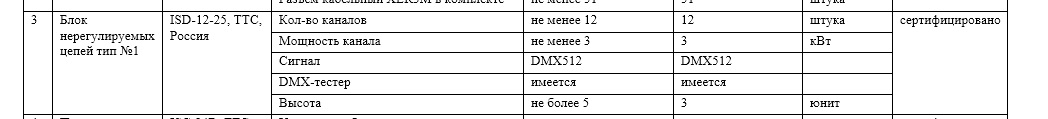(п.3 «Блок нерегулируемых цепей тип №1». Заказчиком было установлено: требуемый параметр - мощность канала, требуемое значение - не менее 3 кВт, однако Участник предложил значение 3, что не соответствует требованию Заказчика. Блок нерегулированных цепей тип 1 (ISD-12-25, ТТС, Россия), имеет мощность канала 5 кВт.)