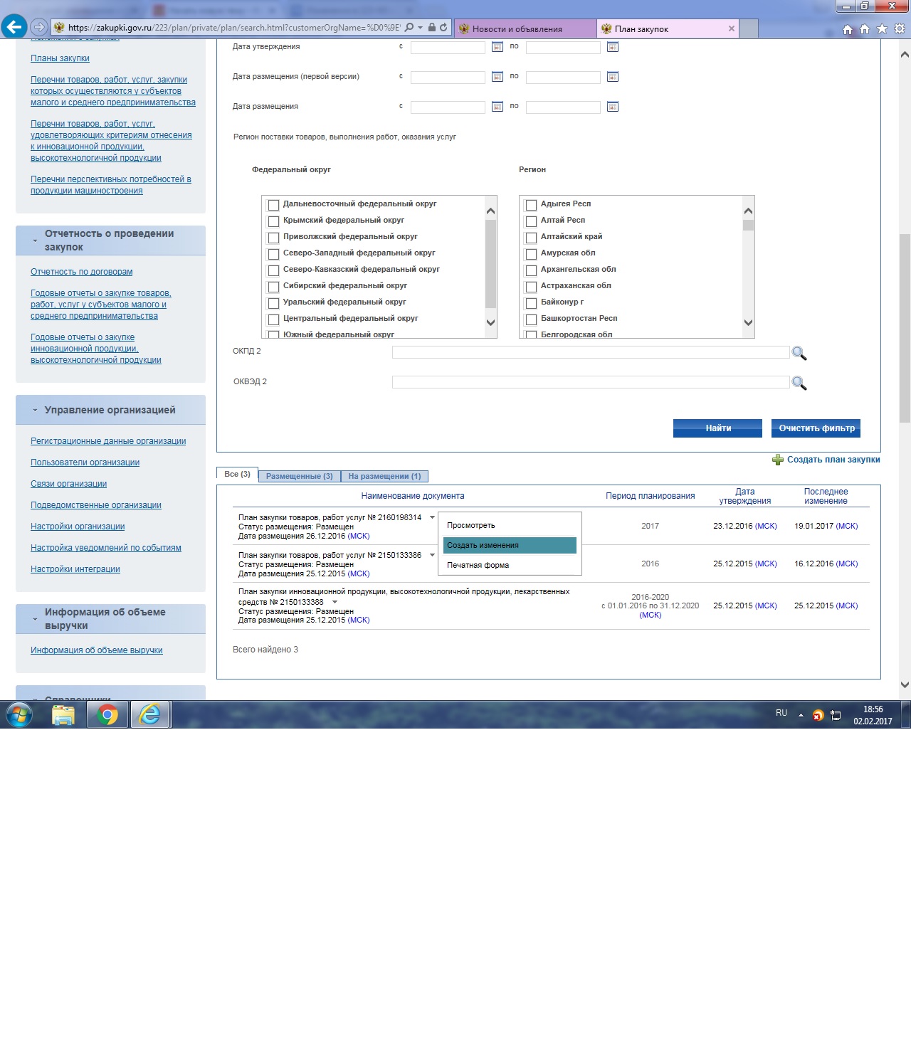 не размещаются изменения в план на ЕИС