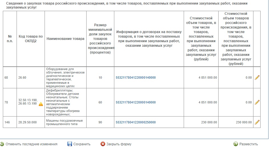 "Уважаемый пользователь! Сообщаем, что на настоящий момент вашей организацией размещены недостоверные сведения об исполнении в реестре договоров, в том числе в части закупок товаров российского происхождения, а именно размещенные сведения об исполнении договоров значительно превышают стоимость таких договоров. Данные недостоверные сведения также отображены в ежемесячной и годовой отчётности по договорам в части сведений о закупках товаров российского происхождения в соответствии с постановлением Правительства от 03.12.2020 № 2013, в связи с чем сведения отчётности некорректны и возможно искажение доли закупок товаров российского происхождения. За неразмещение в ЕИС информации о закупке товаров, размещение которой предусмотрено законодательством РФ, предусмотрена административная ответственность в соответствии с частью 5 статьи 7.32.3 КоАП РФ. При наличии состава административного правонарушения, Федеральная антимонопольная служба, являющаяся уполномоченным федеральным органом исполнительной власти, в соответствии со статьёй 23.83 КоАП РФ вправе привлечь организацию и должностных лиц к административной ответственности. Поскольку наличие некорректных сведений явились следствием ошибок, допущенных Вами при указании цены за единицу и количества поставленного товара при размещении сведений об исполнении по договорам, рекомендуем Вам в срок до 26.08.2022: 1. Внести изменения в размещенные в 2021 году в реестре договоров сведения об исполнении договоров. 2. Внести изменения в размещенную ежемесячную отчетность по договорам в части товаров российского происхождения за соответствующий период путём обновления отчёта. 3. После внесения изменений в реестр договоров и обновления ежемесячной отчетности по договорам, внести изменения в годовую отчетность в части закупок товаров российского происхождения за декабрь и за 2021 год путём обновления отчёта. При возникновении вопросов при внесении изменений, рекомендуем формировать обращение в службу технической поддержки ЕИС."