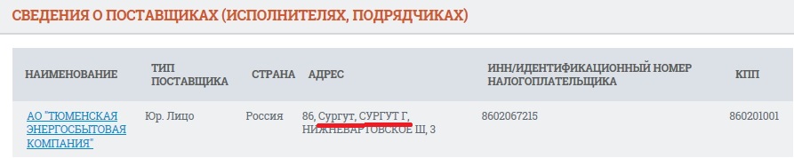 Сведения о поставщике в Реестре договоров