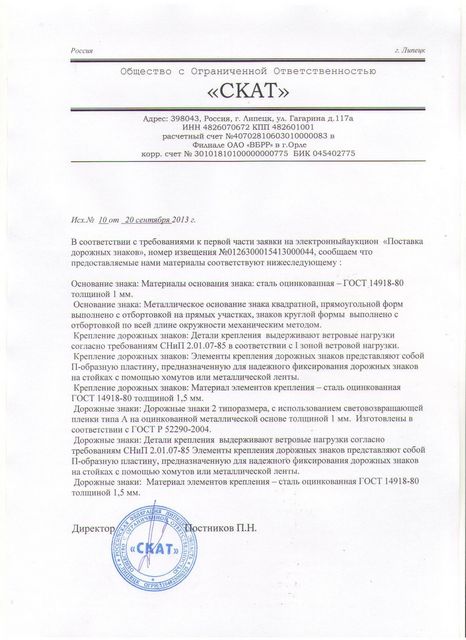 Основание знака:. Материалы основания знака: сталь оцинкованная – ГОСТ 14918-80 толщиной 1 мм.