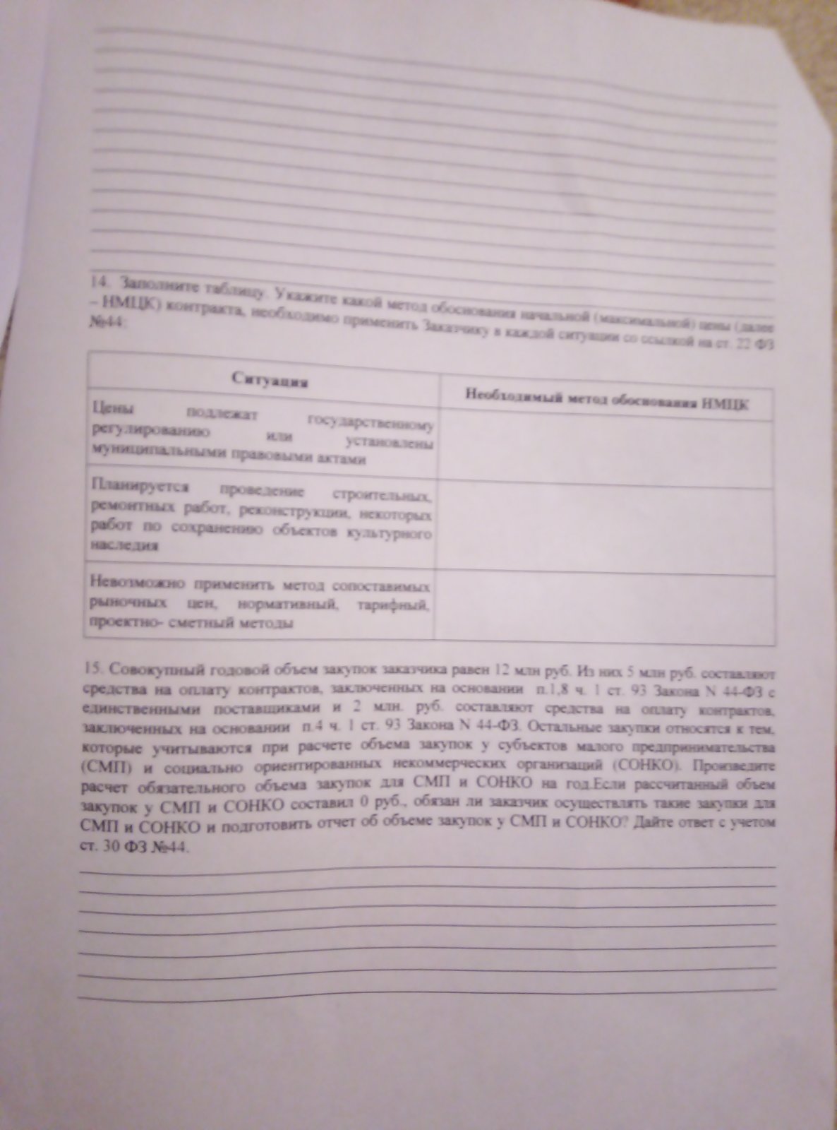 15 вопрос: 5 млн×15%=750т.р. Это объем закупок у смп и сонко ; Обзаны согласно ч.4 ст.30.