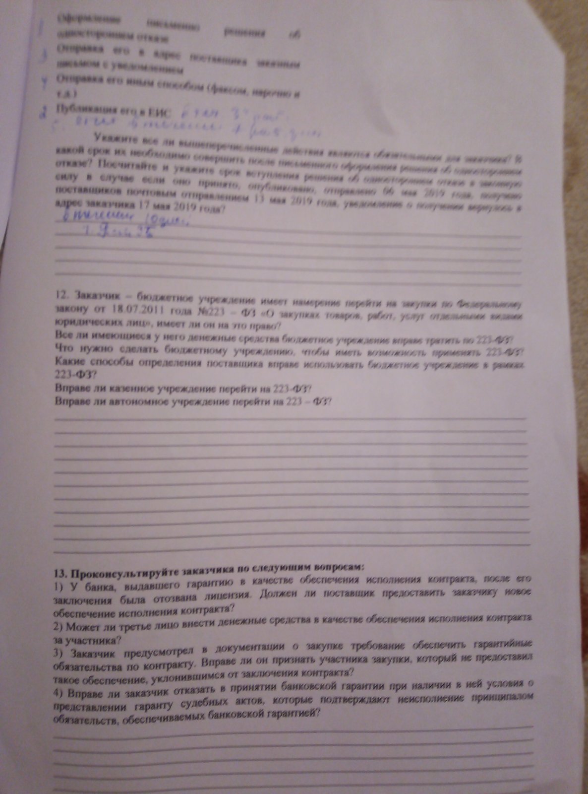 Добрый день. Помогите пожалуйста с ответами на вопросы по 44фз, дело в том, что по 44 фз я не работала со стороны Заказчика, а только по 223фз. Поэтому 44фз для меня темный лес. На часть вопросов ответила. Прошу меня проверить. Вообщем ситуация такая - маме необходимо обучиться, но торгами заниматься не будет обязывают ,типа, "чтоб знали". Ну может кому -нибудь будет просто интересно.