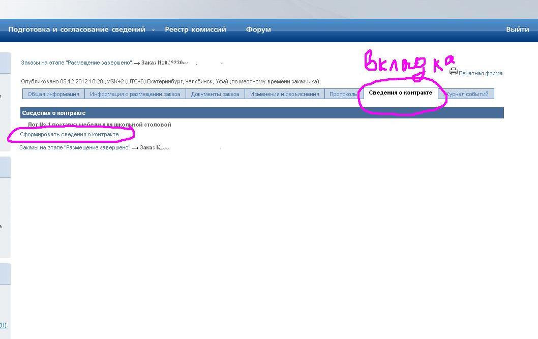 После публикации протокола рассмотрения котировок, система спросила "завершить размещение заказа" , янажал да теперь не знаю как сформировать сведения о гос контракте . Помогите.